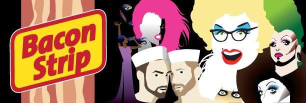 There is a Big Gay Alternative Drag God after all…BACON STRIP, the beloved drag/burlesque/punk variety show and cabaret created and hosted by Sylvia O’Stayformore has announced that it has a new home: Theatre Off Jackson in the International District. The Strip left its home base of Re-bar last December for a short stint at Chop Suey, the home of the weakest drinks on the Hill, (well, them and Fred Wildlife Refuge, but I digress…),then rebounded at The Grill on Broadway in March. The unexpected closure of The Grill in late April left Bacon Strip homeless and a depressed company wondering if it was the swan song for Seattle’s only alternative drag performance showcase.
