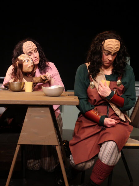 With dialogue scripted completely in the Klingon language, and narrated in English by a Vulcan narrator (and translated with supertitles), Klingon themes of courage and honor propel Dickens’ traditional story of the cowardly SQuja’ (Scrooge) as he is challenged to revisit his choices and change his fate with the help of three Klingon warrior spirits.