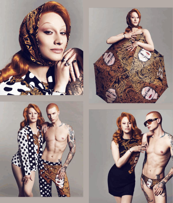 Well, if you act very quickly, you might be able to snatch one of the divoon pieces from the Jinkx Monsoon and Patrick Church collab that just dropped this morning, December 5th. The beloved performer took time out from her insanely busy schedule of Broadway shows, talk show appearances and her current national holiday tour with pal BenDeLaCreme to help create a small line of cute fashion pieces with hip fashion designer Patrick Church. There’s an adorable shirt, pants, dress, scarf, panties and umbrella and all plastered with a sexy likeness of Jinkx being ultraglam! But, it’s a very limited run with only a 100 pieces per item so you’d better WERK and go snatch something up before they’re all gone!